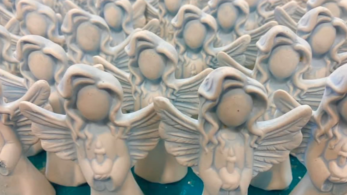 Catherine said they don’t just go to work, they give from their hearts, and that’s exactly what she decided to start doing. With her one angel mold, Catherine and her friend Donna would spend hours in the studio, making a dozen angels a day, and sending them to nurses in local hospitals.
