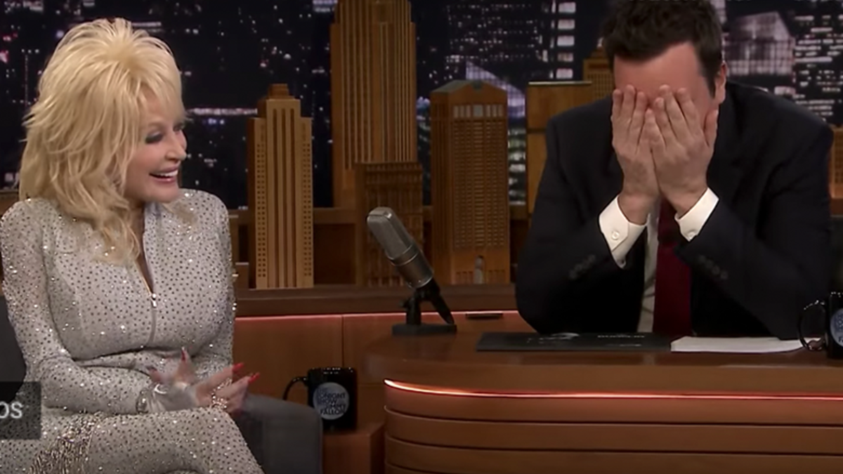 The look on Jimmy's face pretty much sums it up. He even falls to the floor and hides behind his desk, while Dolly covers her face. Yup, this clip will have you LOLing.